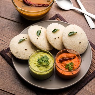 Light, fluffy, and healthy steamed rice cakes — a classic South Indian breakfast snack. Served hot with flavorful sambar and fresh coconut chutney.